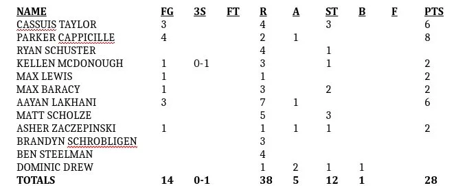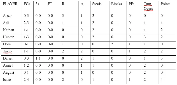 Eight of the 12 players representing the Stars, had baskets in the game, with 3 baskets from Aayan Lakhani, including a circus shot over the backboard while falling out of bounds. All 12 players made the stat sheet with either a field goal, rebound, assist, steal, or a block.
