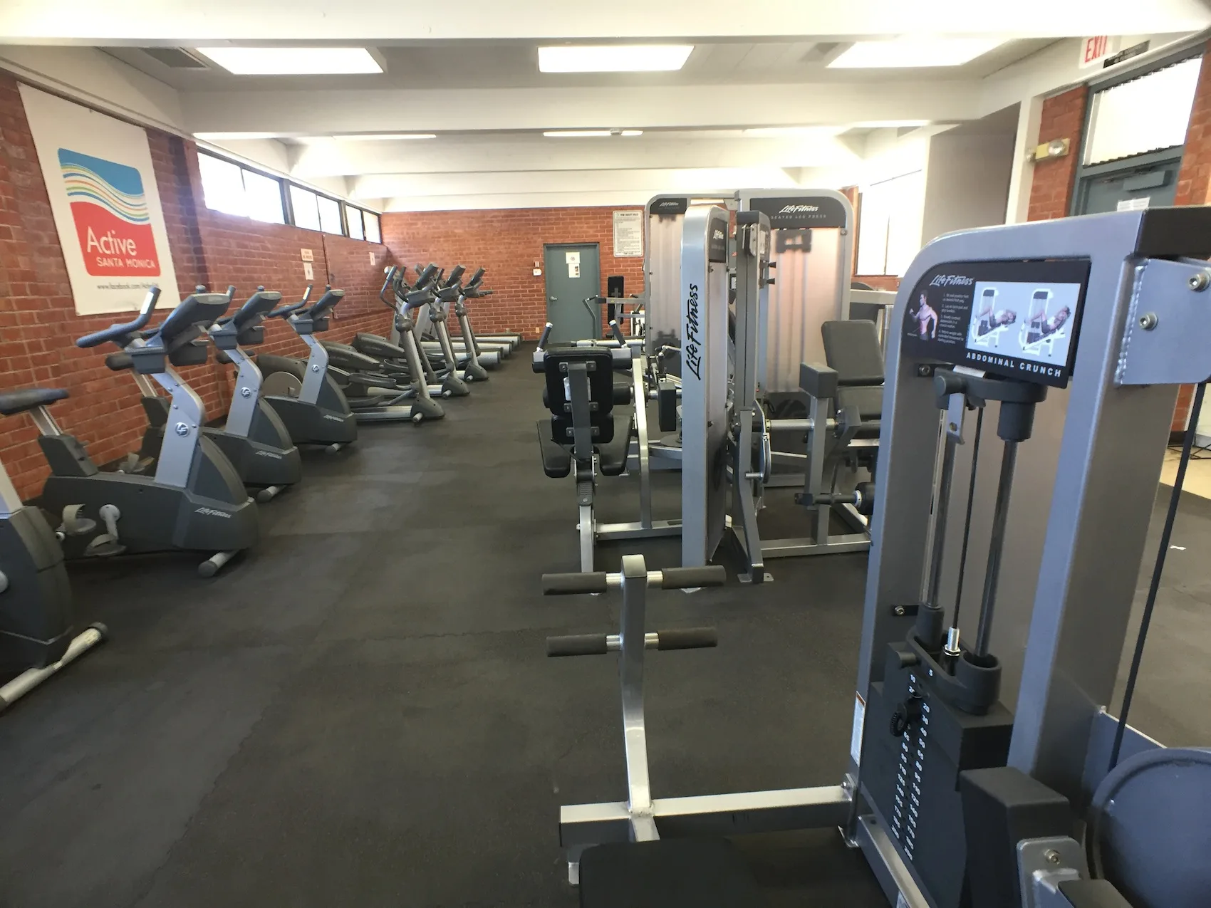 The City of Santa Monica has a workout room chock full of equipment that I am told is actually newer and better maintained than what you might find at a gym that charges you a monthly fee. The cost per visit is just $3. Never feel guilty about having a monthly membership at a gym, and never actually going (or going enough) ever again!!!