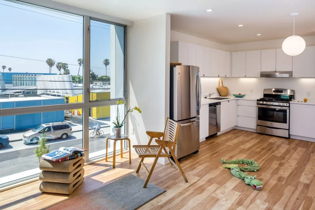 The Arroyo was designed by local architecture firm Koning Eizenberg who designed the project to visually fit in with the surrounding neighborhood. Keeping an outside visual aesthetic that blends in with the (sometimes tony) Santa Monica neighborhoods has long been a Community Corp strategy to avoid NIMBY opposition and to be “good neighbors.”