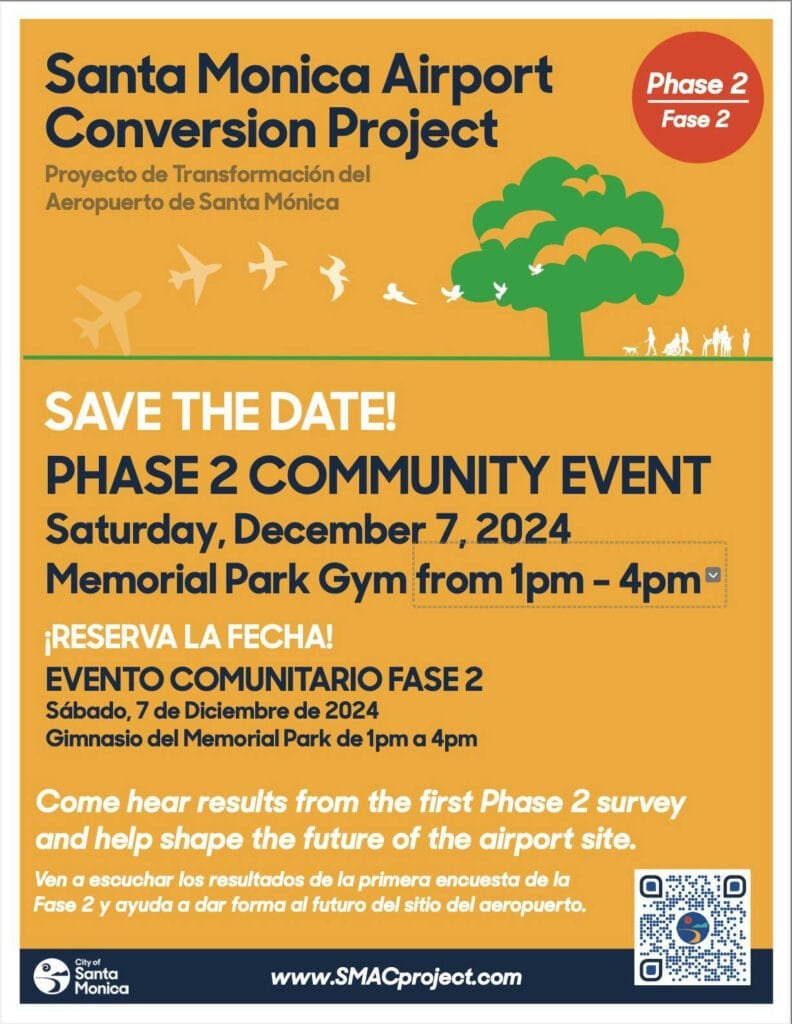 The Airport Conversion team is holding a meeting this weekend to both allow stakeholders (residents, business owners, workers, Mar Vista residents, etc…) to provide input on how the city can turn the airport into open space after the airport is closed in just over four years.
