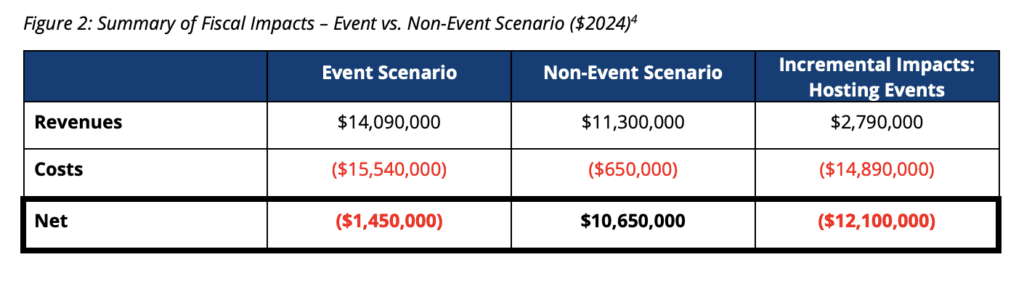A report by HR&A Advisors prepared for Santa Monica last year (available to download at this link) showed that the 2028 games should be a windfall for the city, provided that the city not host any of the games. In a “non-event scenario” the city would net over $10 million in revenue. But the costs of hosting the beach volleyball tournament would more than erase that increase and the games would have cost the city nearly $1.5 million.