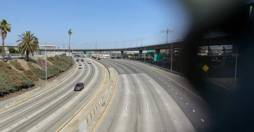 At about 3:50 p.m. protestors made their way on to the 101 Freeway via the (closed, with some police presence) Alameda/Vignes on-/off-ramp