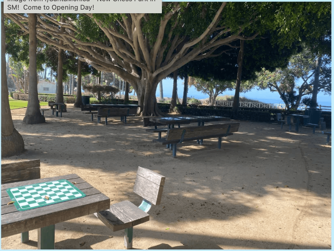 Hi guys! I’m organizing an unofficial Opening Day event for the new Chess Park in Santa Monica on Saturday July 12th at 2pm!