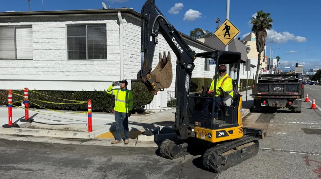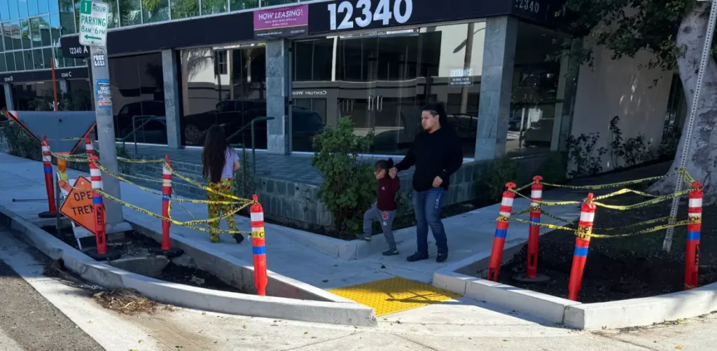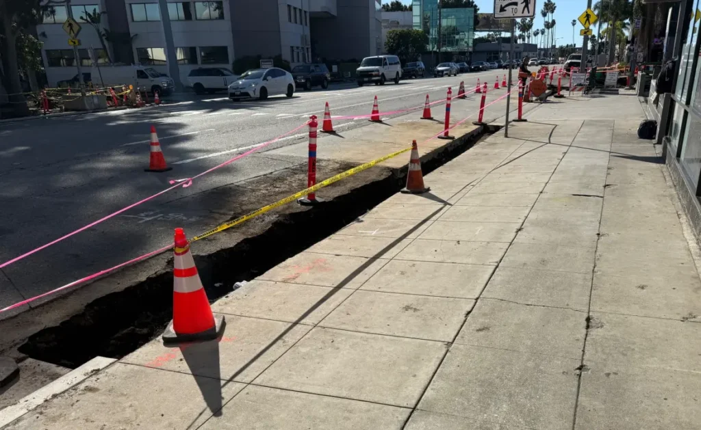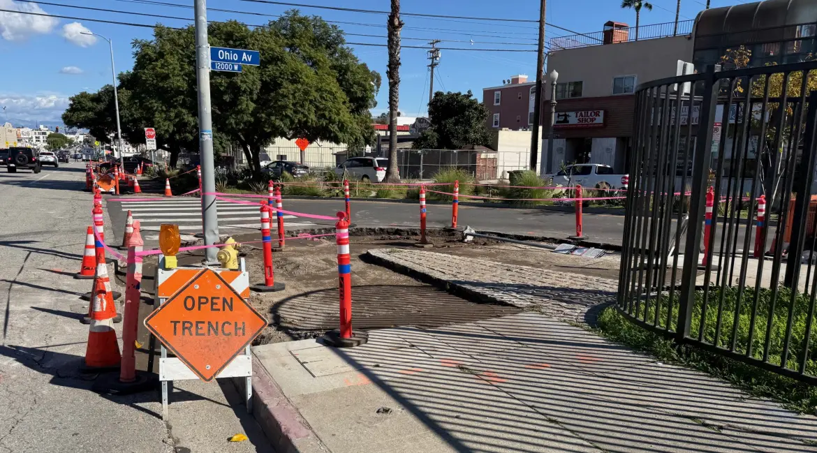 In early December, Streetsblog shared photos of work underway on Caltrans State Route 2 Multimodal Project. At that time, project work was underway primarily along Alvarado Street in Echo Park. Today, Streetsblog spotted work underway on Santa Monica Boulevard in the Sawtelle neighborhood in West L.A.